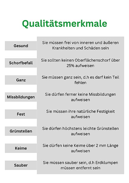 Top 20 der Sorten in Deutschland: Belana, Agria, Zorba, Gala, Jelly, Laura, Lilly, Marabel, Corinna, Karlena, Soraya, Amanda, Simonetta, Antonia, Pirol, Queen Anne, Wega, Belmondo, Karelia und Linda.